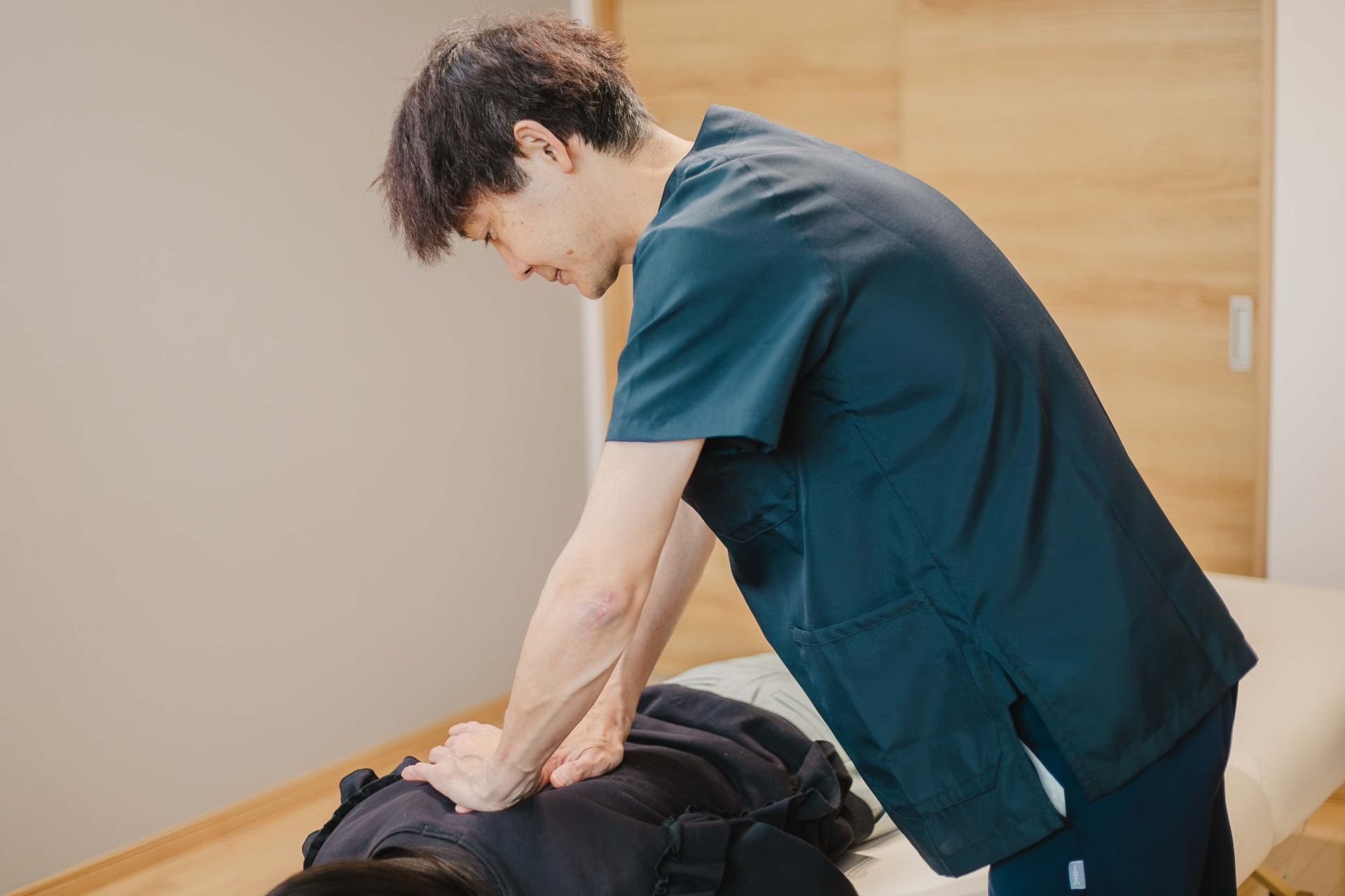 当院では、ぎっくり腰の痛みに対して、まず硬くなった筋肉を手技療法で取り除いていきます。